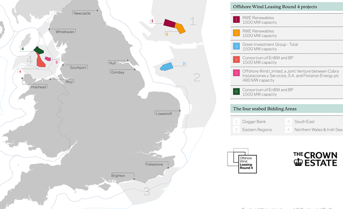 Round 4 bids – all far offshore in regions of high wind power with connections to the Offshore Transmission Network