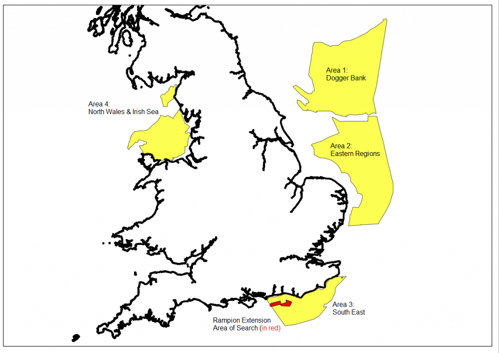 The Dogger Bank area also has the area to accommodate 114 GW of wind farm capacity. The result of the Round 4 leasing was announced in February 2021 the Crown Estate allocated a further 8GW of capacity to the wind farm pipeline for 2030 resulting in a pipeline total of 60GW (to meet the original target of 40GW by 2030). It added 4.5 GW extra for the North Sea and 3.5 GW extra for N. Wales and the Irish Sea. Areas selected by commercial bidders were in areas of high wind power density and with an offshore transmission network planned. There were no bids for the South East region – a region of relatively low wind power density with no offshore transmission network planned.